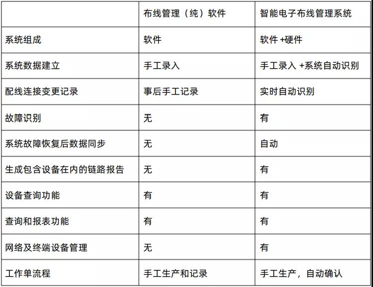 可以采用純軟件線纜管理系統或軟硬件一體化的智能電子線纜管理系統來實現線纜系統管理。系統功能要求如表1所示。