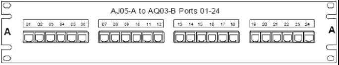 例如,圖4和圖5顯示了24位配線架使用的標簽,24根6類電纜連接到AJ05到AQ03機柜(見如圖2)。
